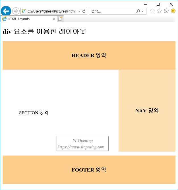 <h2>HTML5 요소를 이용한 레이아웃</h2>