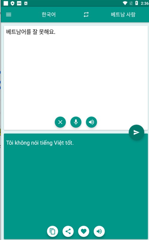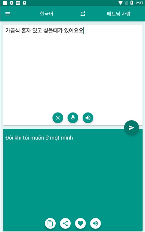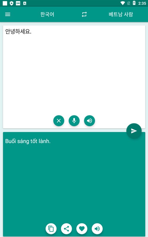 그럼 하단에 베트남어로 번역이 된다. 베트남어를 통역기로도 활용할 수 있는데, 상대방에게 음성으로 된 번역기 내용을 그대로 들려줄 수도 있다.