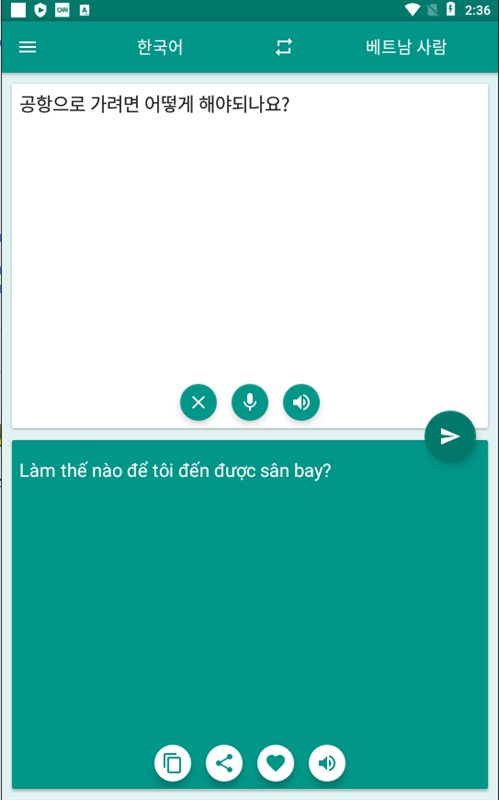 짧은 단어는 손쉽게 번역되는걸 확인하였으니 조금 긴 단어를 번역해보도록 하겠다. 필자가 공항으로 가려면 어떻게 해야되나요? 라고 한국어로 입력해봤는데, 아래쪽에 번역된 베트남어가 보인다.
