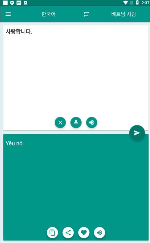지금까지 한국어를 베트남어로 번역해서 말해봤는데, 베트남어를 한국어로 번역할 수도 있다. 베트남인들이 한국어를 모를때 자신들이 베트남어로 입력한 후에 번역기를 돌리면 한국어로 대답할 수 있다.