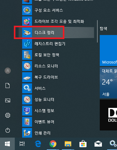 [윈도우키 -> Windows 관리도구 -> 디스크 정리]
