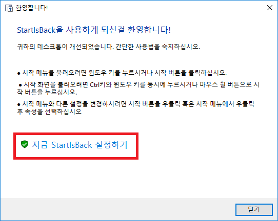 startisback++ 2.8.5 repack 한글판 무설치 포터블 설치 및 적용방법