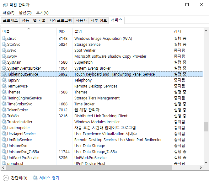 혹시나 cpu,메모리 점유율이 상승한다면 TableinputService 라는 프로세스를 함께 중지해주면 될 것 같다.