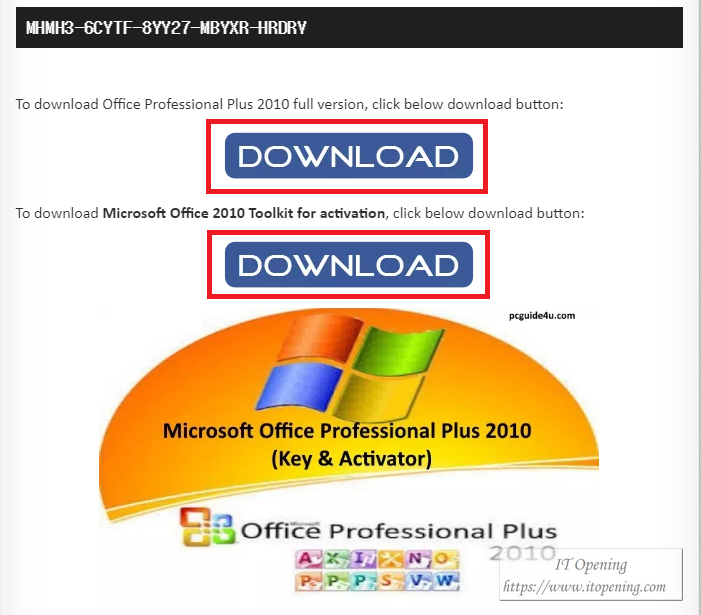 해외블로그이며, 아래쪽으로 조금 내려가다보면 다운로드 버튼이 2개 나타나게 된다. 위에꺼는 엑셀 2010 체험판 정식 풀버전 다운로드를 할 수 있고, 아래쪽은 정식판으로 바꿔주는 툴킷(Toolkit)이다.