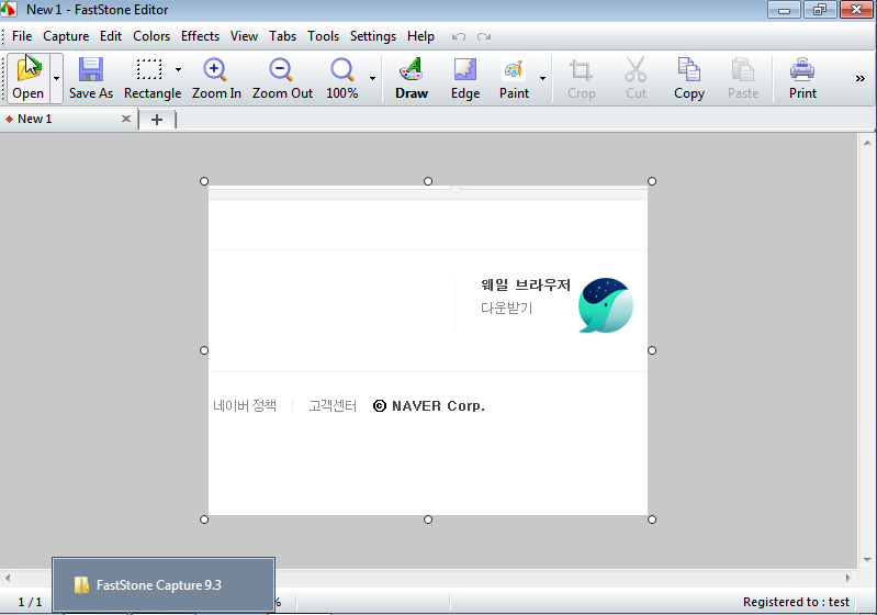 faststone capture 9.3 실행된 모습이고, 테스트로 네이버 화면을 캡쳐해봤다. 잘된다. 현재 올려놓은 파일안에는 한글패치 파일이 존재하지 않는데, 네이버 카페에 방문하면 한글패치버전을 다운받을수 있다.