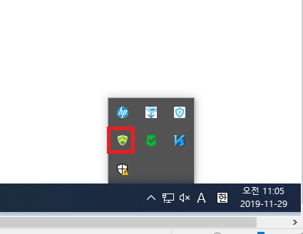 작업표시줄을 확인해본 결과 평소 못보던 아이콘이 보이는걸 확인할 수 있었다. 4번째 아이콘인데, 정체를 알 수 없는 아이콘이었다.