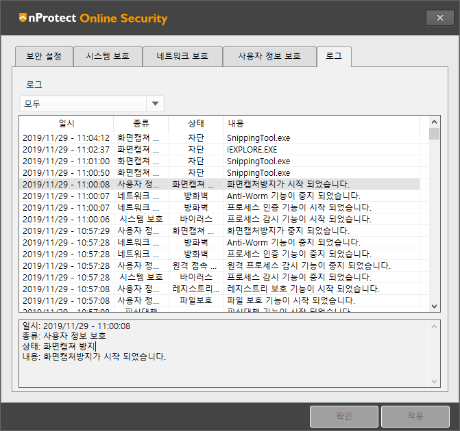 세부적인 로그를 분석해봤는데, 스니핑툴에 대해서 감지를 해서 차단하거나 화면캡처방지를 통해서 사용자의 화면을 안전하게 보호해주는 기능을 가지고 있어 상당히 유용한 보안툴인것은 맞는것 같다.