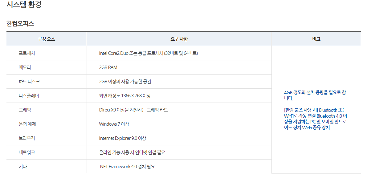 한컴오피스 홈페이지 주소를 확인해본 결과 링크 연결된 페이지로 접속을 시도 하면 된다.