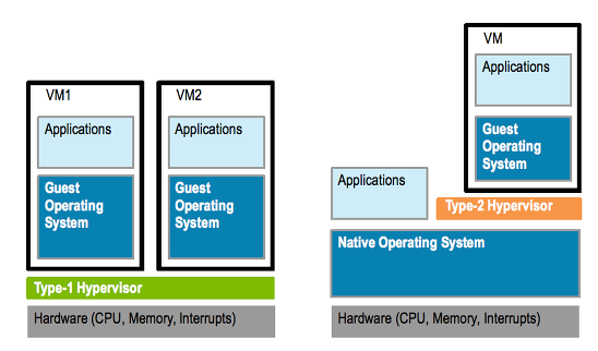 Type 1은 하이퍼바이저 위에 모든 도메인이 동작하는 방식이고, Type 2는 호스트 운영체제에서 가상화 프로그램을 실행하여 게스트를 실행하는 방식을 이야기한다.