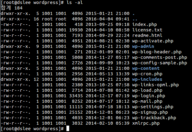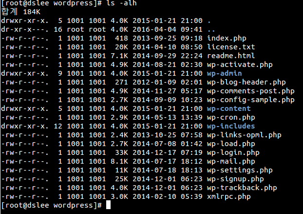 -a 디렉토리 안에 있는 모든 파일과 디렉토리를 보여준다. all.
