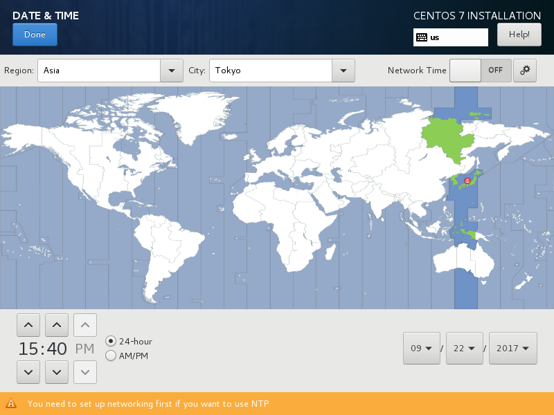 시간대를 설정하려는지도에서 지점을 클릭하고 왼쪽 상단에있는 [완료] 버튼을 누른다.