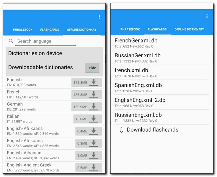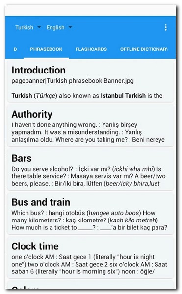 무엇보다 이 앱의 가장큰 장점은 한 번 어플을 설치하고 나면 인터넷 연결이 안되는 환경에서도 터키어 사전을 실행시킬고 사용할 수 있다는점이다. 수십만개의 데이터베이스(DB)에 저장된 단어와 문장에 매우 빠르게 접근할 수 있다.