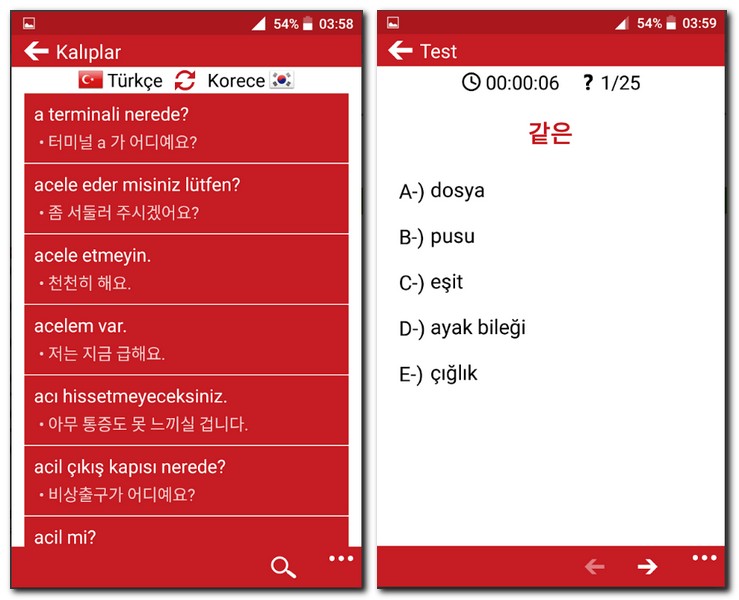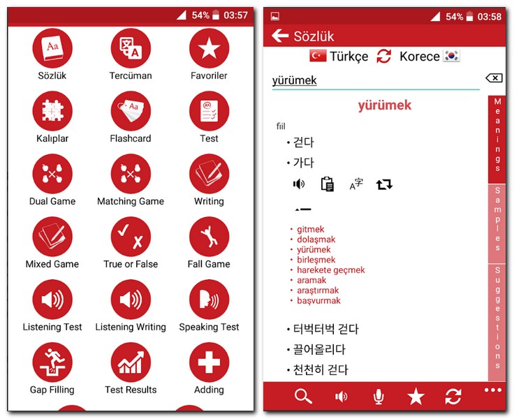 터키어를 한 번에 공부할 수 있는 터키어 한국어 사전 교육 번역 어플 앱이다. 터키어를 배우면서 시간과 돈을 절약할 수 있다. 학원이나 인터넷 강의 등에 돈을 지불해서 배울 필요도 없을정도로 자료가 풍부하고 괜찮다.