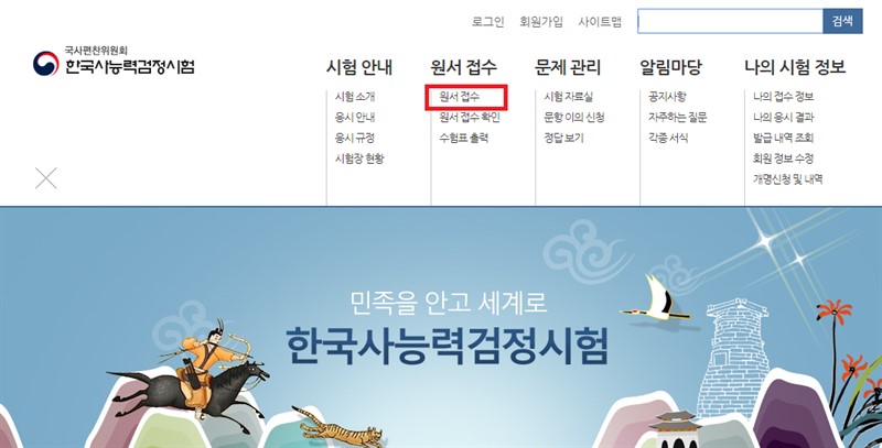 한국사능력검정시험 원서접수를 위해서는 회원가입을 해야 된다. 회원가입을 완료하고 나서 원서접수를 순서대로 진행하면 큰 문제 없이 원서접수가 가능하다.