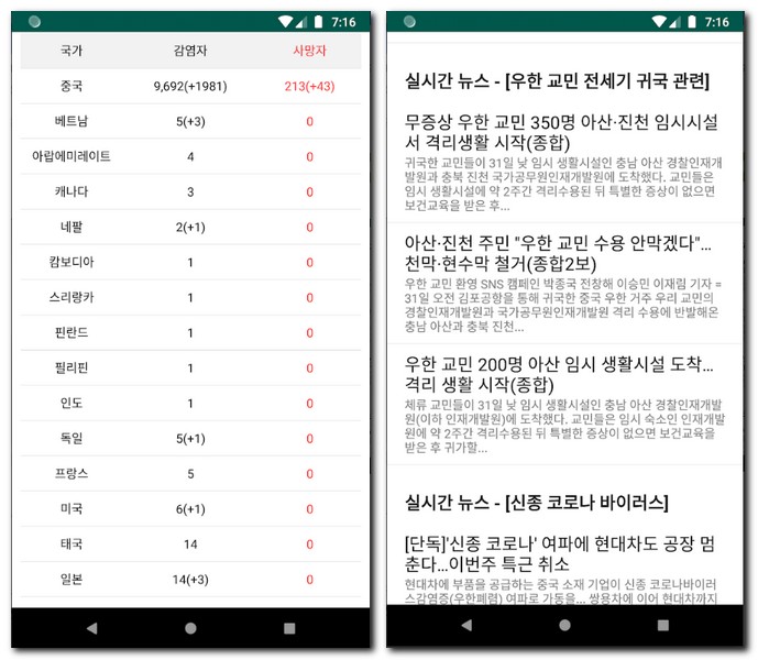 스마트폰을 이용해서 굉장히 빠른 속도로 실시간 중국 우한 폐렴 신종 코로나 바이러스 속보를 한 눈에 받아볼 수 있도록 도와주는 어플 앱이다.