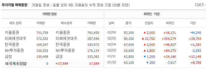 이에 따라 실시간으로 키움증권, 미래에셋대우, 한국증권, NH투자증권, 삼성 등 다양한 투자자별 매매동향을 보게되면 거래량이 폭등한 것을 확인할 수 있다.