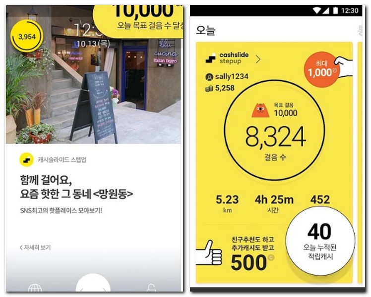 캐시워크 라고 부르는 캐시슬라이드 스텝업은 포인트형 만보기 앱이다. 생활 속 걸음을 포인트로 바꿔볼 수 있다. 익숙한 생활이 스텝업으로 새로워진 것이다.