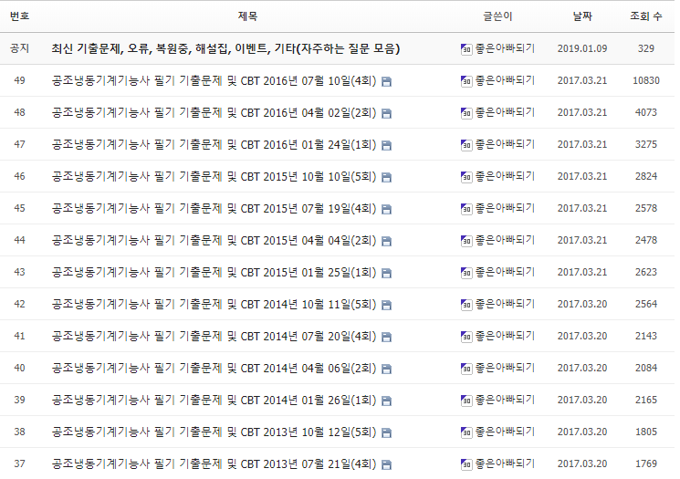2016년까지의 기출문제 자료이긴 하지만 충분히 검정시험을 준비하는데 도움을 받아볼 수 있다. 가장 최근 기출문제집을 선택한다.