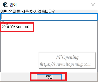 Cheat Engine.exe 파일을 실행하면 언어선택이 나타나게 되는데, 한글패치가 된 한글판이기 때문에 'Korean'을 선택해서 확인을 눌러준다.