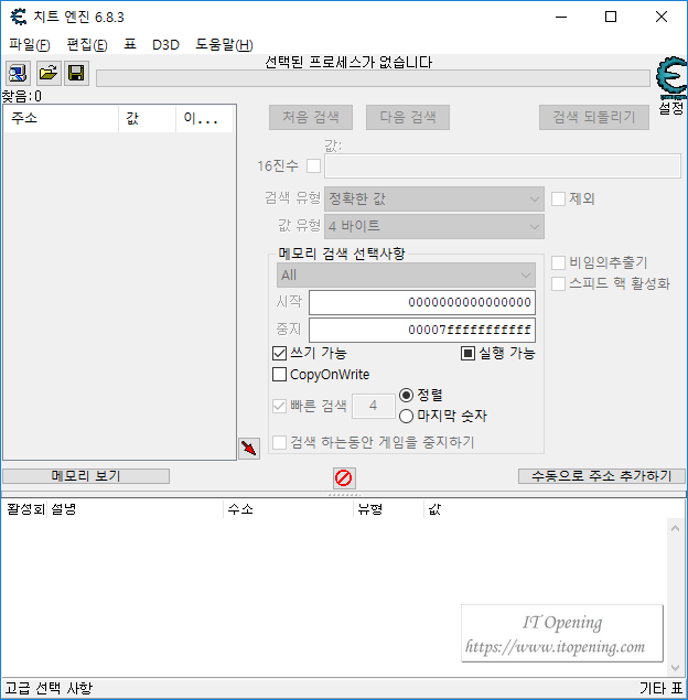 치트엔진(Cheat Engine) 6.8.3 무설치 한글판 다운로드