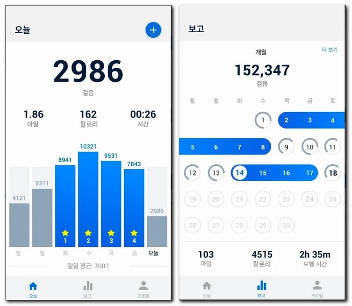 구글 플레이스토어에서 만보계 어플을 검색하면 나타남. 생각보다 성능이 좋음.