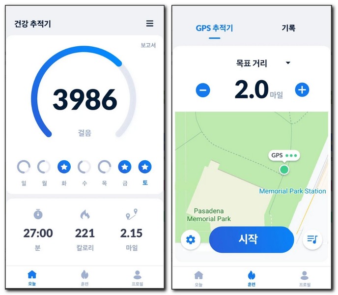 - 훈련모드에서 아침, 점심, 저녁 식사후 30분 동안 걷기 기능을 활성화하여 훈련 모드로 진입할 수 있음