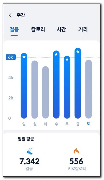 - 사용자가 소비한 칼로리가 얼마인지 걸은 시간과 얼마만큼 걸었는지 운동효과를 그래프로 보여줌.