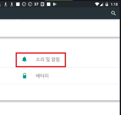 그리고 설정에서 소리 및 알림을 선택한다. 알림음을 무음으로 설정할 것이다.