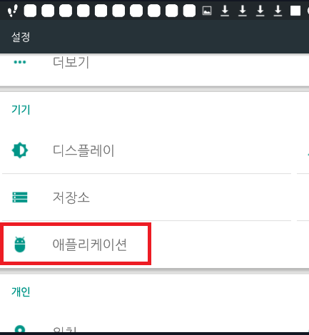 우선 해야될 것은 설정 -> 애플리케이션 을 터치해서 진입한다.