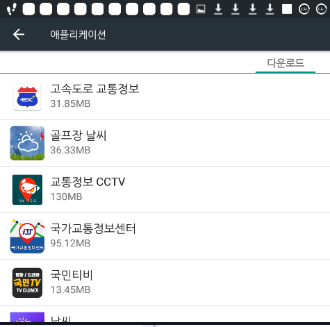 다운로드 받고, 현재 스마트폰에 설치된 앱 종류들이 많이 나타나게 된다. 상단 메뉴 알림바에 알림이 표시되지 않도록 하기 위해서 앱을 하나 선택한다.