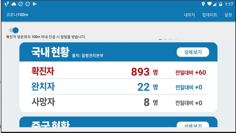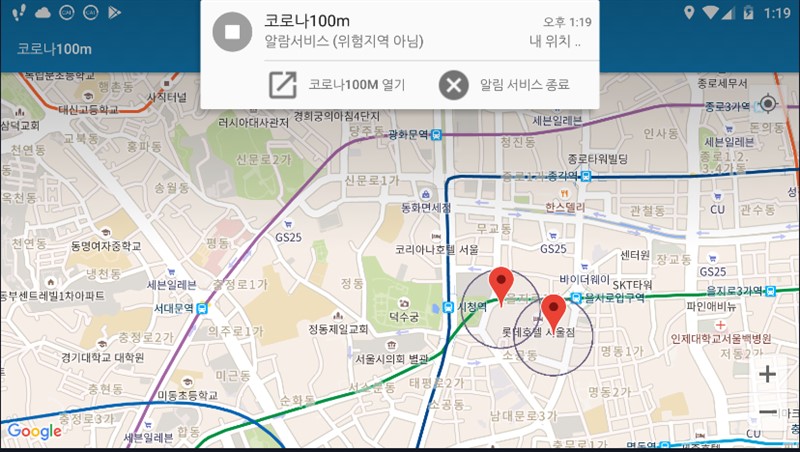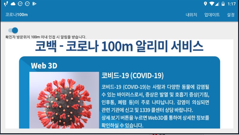 1. 코로나 100M 알리미 앱
