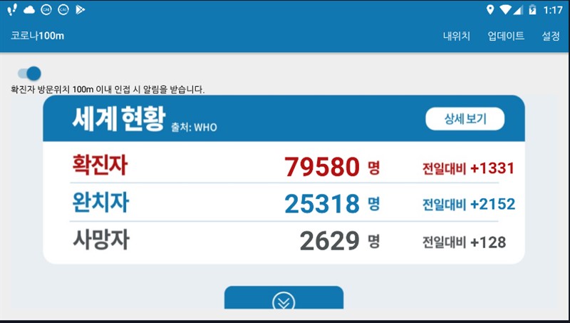 이런 가운데 확진자 동선과 방문 시설에 대한 정보가 계속 정부측에서 발표를 하고 있고, 이 가운데 확진자 방문 시설 접근 시 스마트폰으로 알림을 받을 수 있는 기능을 제공하는 앱이 많이 출시되고 있는 중이다.