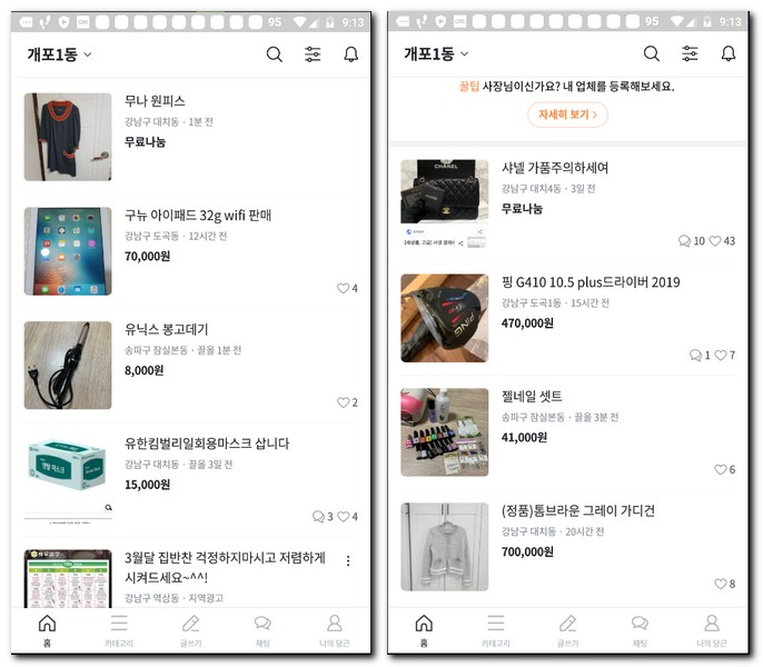- 우리 집 근처의 사람들과 중고 물건을 사고 팔 수 있다