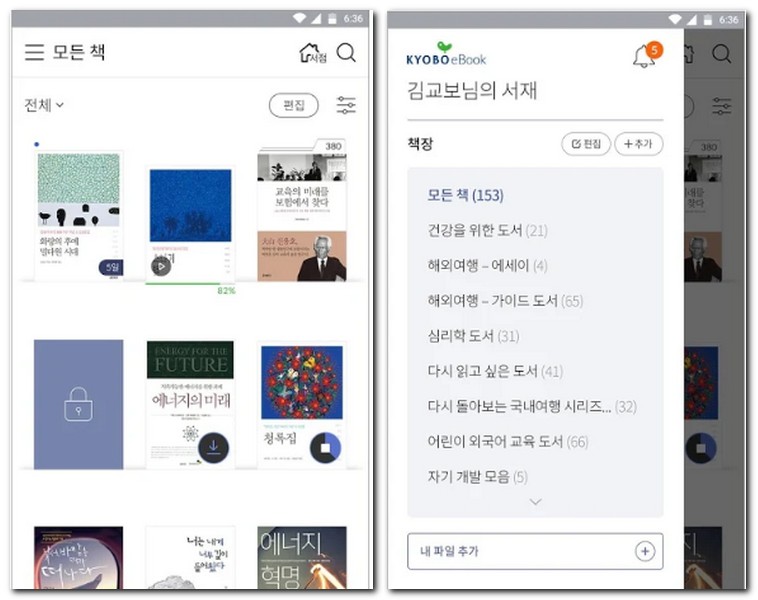 - 나의 모든 eBook, 나만의 책장에서 관리