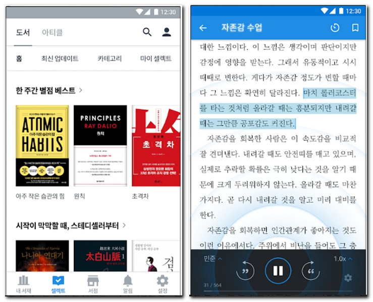 - 베스트셀러, 유명 작가들의 독점 신작까지 50만 종의 컨텐츠 제공