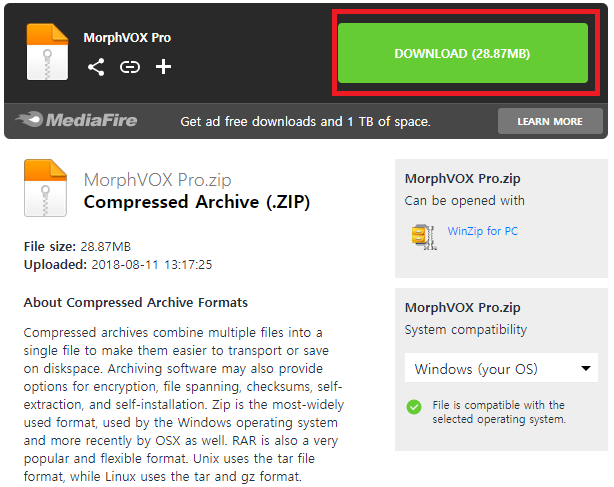 링크 연결된 페이지로 이동하게 되면 MorphVOX Pro 크랙버전 다운로드 받을수 있는 페이지로 연결된다. zip 파일로 압축되어 있고 압축해제 후 사용하면 된다.