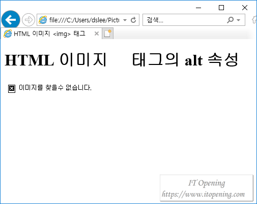 <img src="test.html" alt="이미지를 찾을수 없습니다.">
