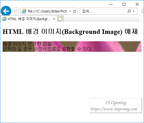 <h2>HTML 배경 이미지(Background Image) 예제</h2>