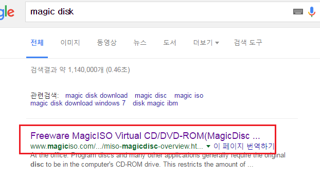 처음에는 구글 검색기를 이용해야된다. 구글에서 magic disc 라고 검색을 하도록 하자. 검색해서 나오는 사진을 보면 Freeware 라고 보인다. 무료 소프트웨어이기 때문에 자유롭게 다운로드 가능하다.