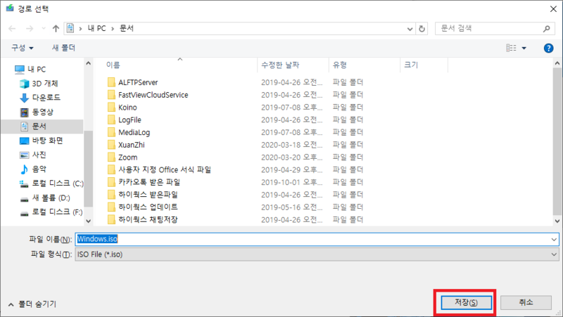 ISO파일명과 함께 경로선택하고, 저장버튼을 클릭한다.