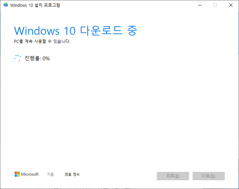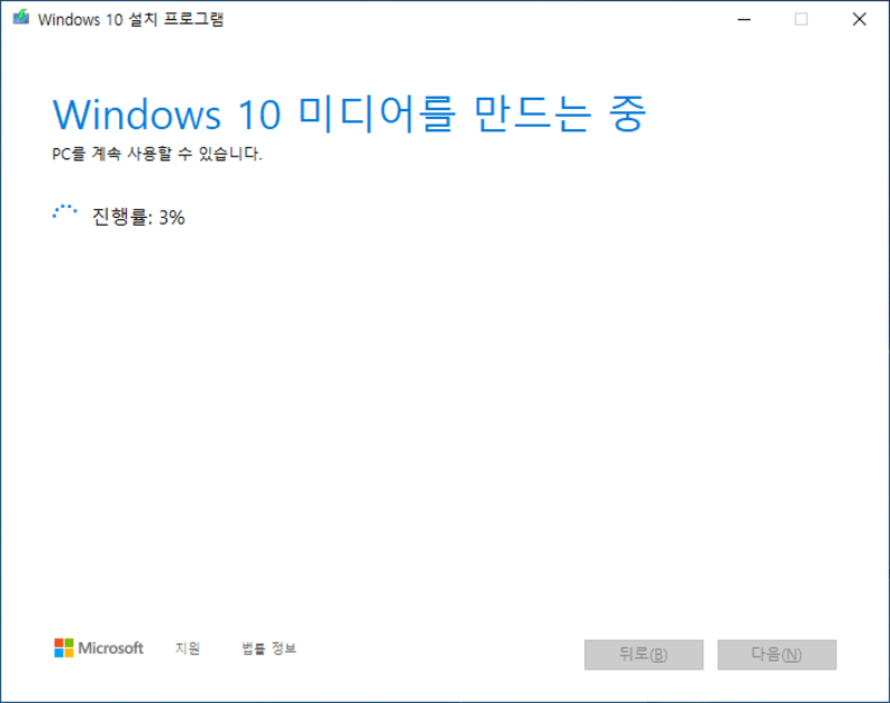윈도우10 다운로드가 완료되면 미디어를 만들게 된다.