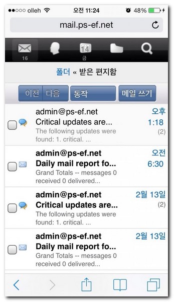 아래는 스마트폰으로 메일 확인하는 모습이다.
