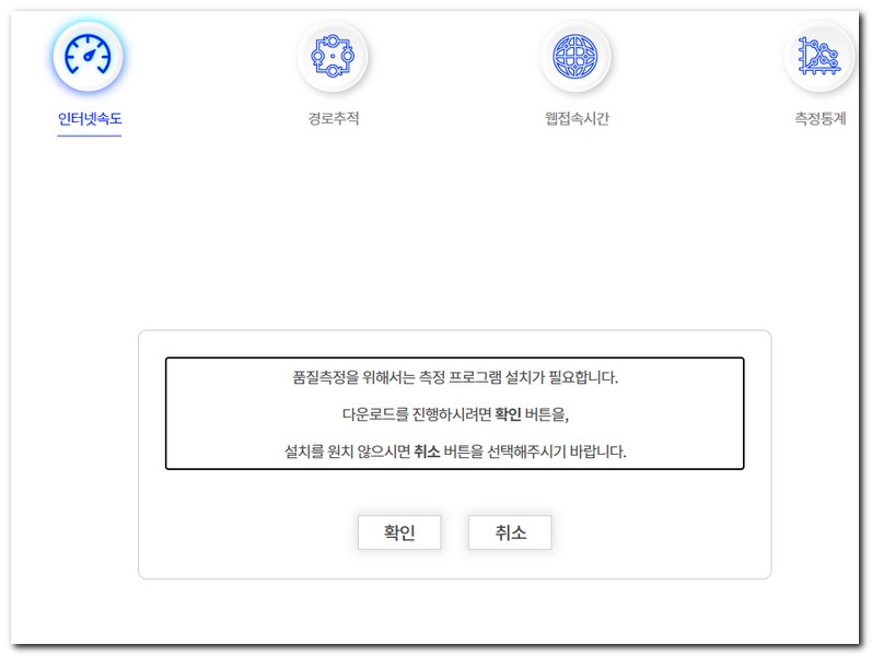 우선 필자의 경우 인터넷 속도 높이는 방법에 대해서는 잘 모르겠지만 한국전산원(nia)에서 인터넷 속도측정을 통해서 정확한 품질테스트를 할 수 있었다. 예전에는 kt, sk브로드밴드 인터넷 속도측정, 밴치비 등에서 많이 이용했지만 한국전산원이 아무래도 정확한 속도를 측정할 수 있도록 도와준다. 사이트에 접속해서 인터넷 속도 메뉴를 클릭한다. 품질측정을 위해서는 측정 프로그램 다운로드를 받고 설치해야 된다. 다운로드를 진행하려면 확인 버튼을 클릭해야 되며 설치를 원치 않는다면 취소버튼을 클릭하면 된다.