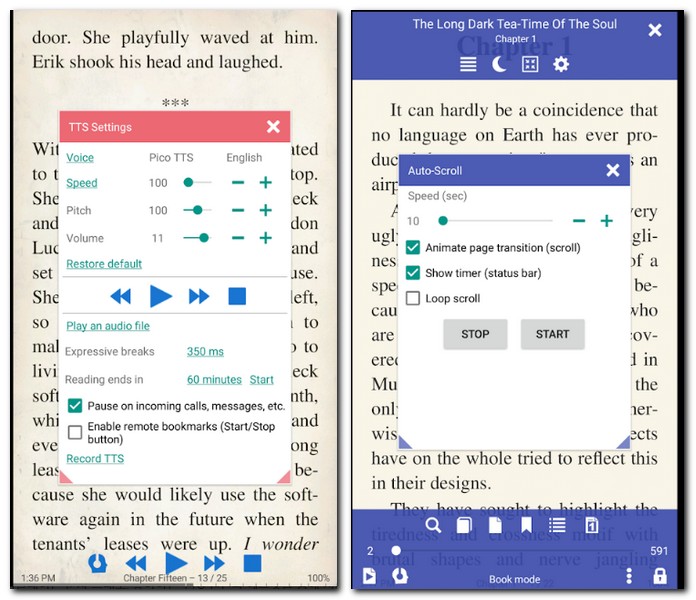 - 다중 독서 모드 : Book에서 Scroll to TTS 독서에서 RSVP 독서 독서까지