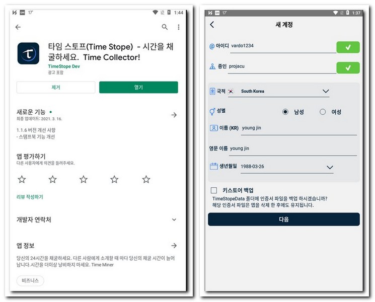 타임 스토프(Time Stope) 시간을 채굴하는 앱