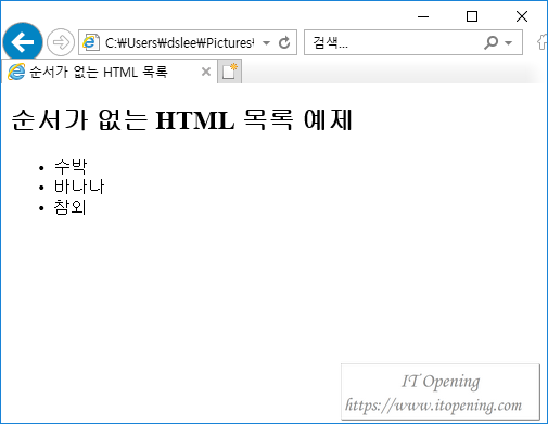 <h2>순서가 없는 HTML 목록 예제</h2>