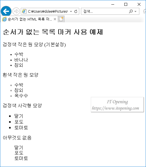 <title>순서가 없는 HTML 목록 마커 사용</title>