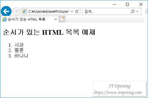 <title>순서가 있는 HTML 목록</title>