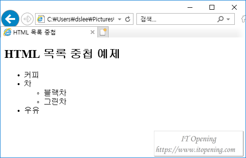 HTML 목록 중첩(Nested HTML List)