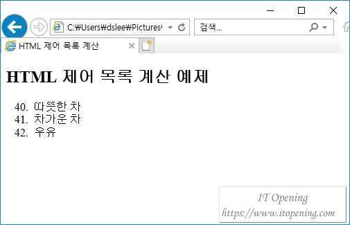 <h2>순서가 있는 HTML 목록 예제</h2>